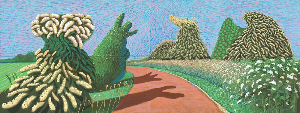 Hockney heeft het vermogen om schoonheid te zien waar hij kijkt. En hij beschikt over een betoverende aanstekelijkheid. Hij hoeft maar ergens naar te wijzen en het verandert in een sprookje. Het maakt niet uit of hij nu een kleurpotlood, een kwast of een iPad pakt, er komt één niet aflatende stroom aan meesterwerken uit zijn handen.